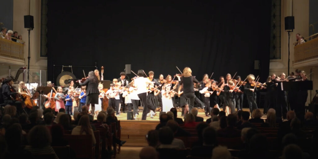 Am 2. Oktober performten alle 9 Geigengruppen gemeinsam mit Pauken und Trompeten, Celli, Kontrabass und E-Gitarre als Coolstrings extended beim Jubiläumskonzert zum 25-jährigen Bestehen der JSBM im Wiener Konzerthaus. 60 Musizierende zwischen 3–17 Jahre musizierten mit großem Engagement die beiden Gavotten von J.S. Bach aus Heft 3 in orchestraler Besetzung.